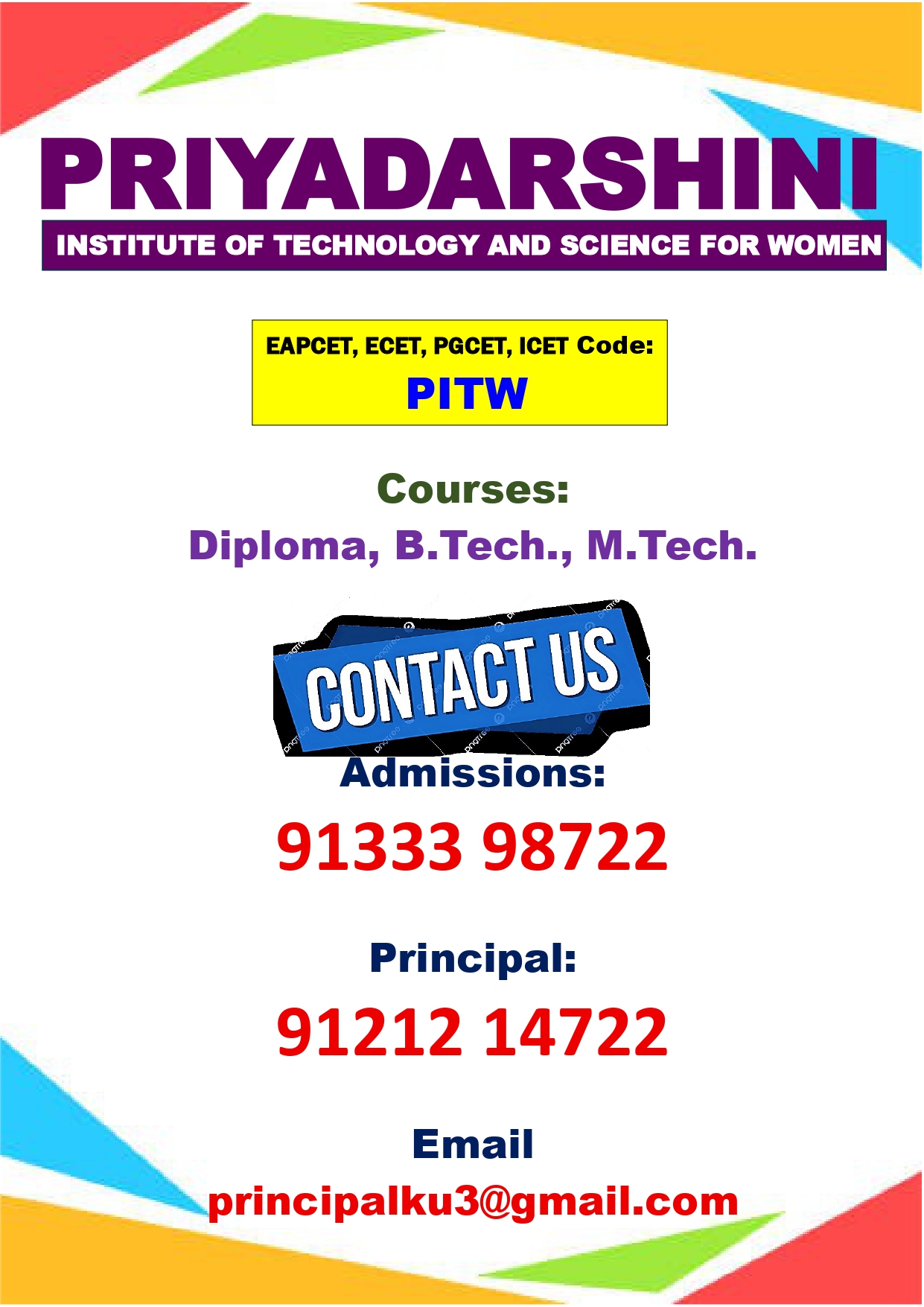Priyadarshini Institute of Technology and Science for Women(PITW) was established in the year 2008 with sole aim of providing quality higher technical education to students through its dedicated and committed staff.